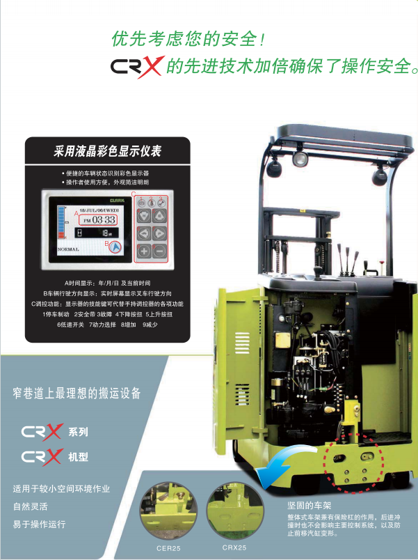 CRX系(xi)列15/18/20/25 當前(qian)位置:首(shǒu)頁>産品(pin)中心>美(měi)國克拉(la)克叉車(chē)
